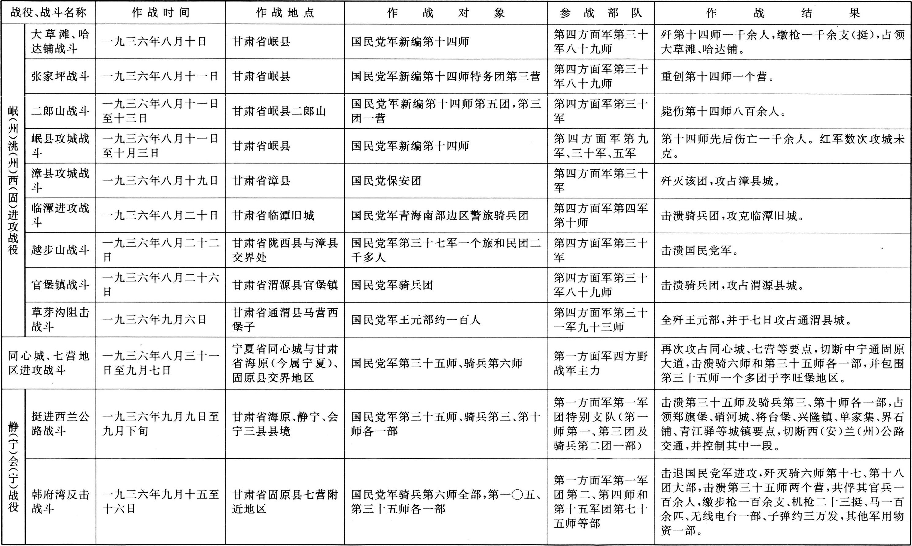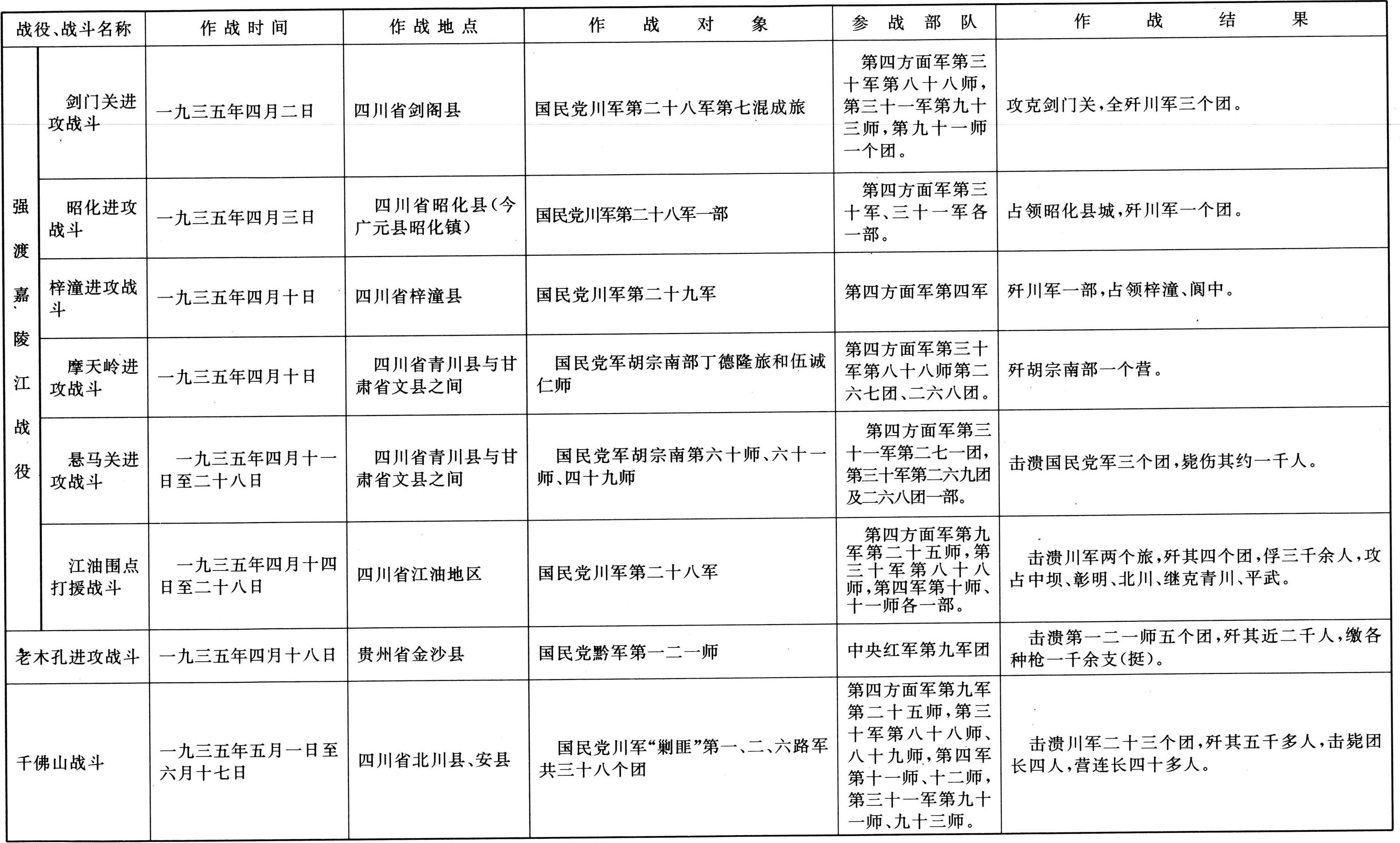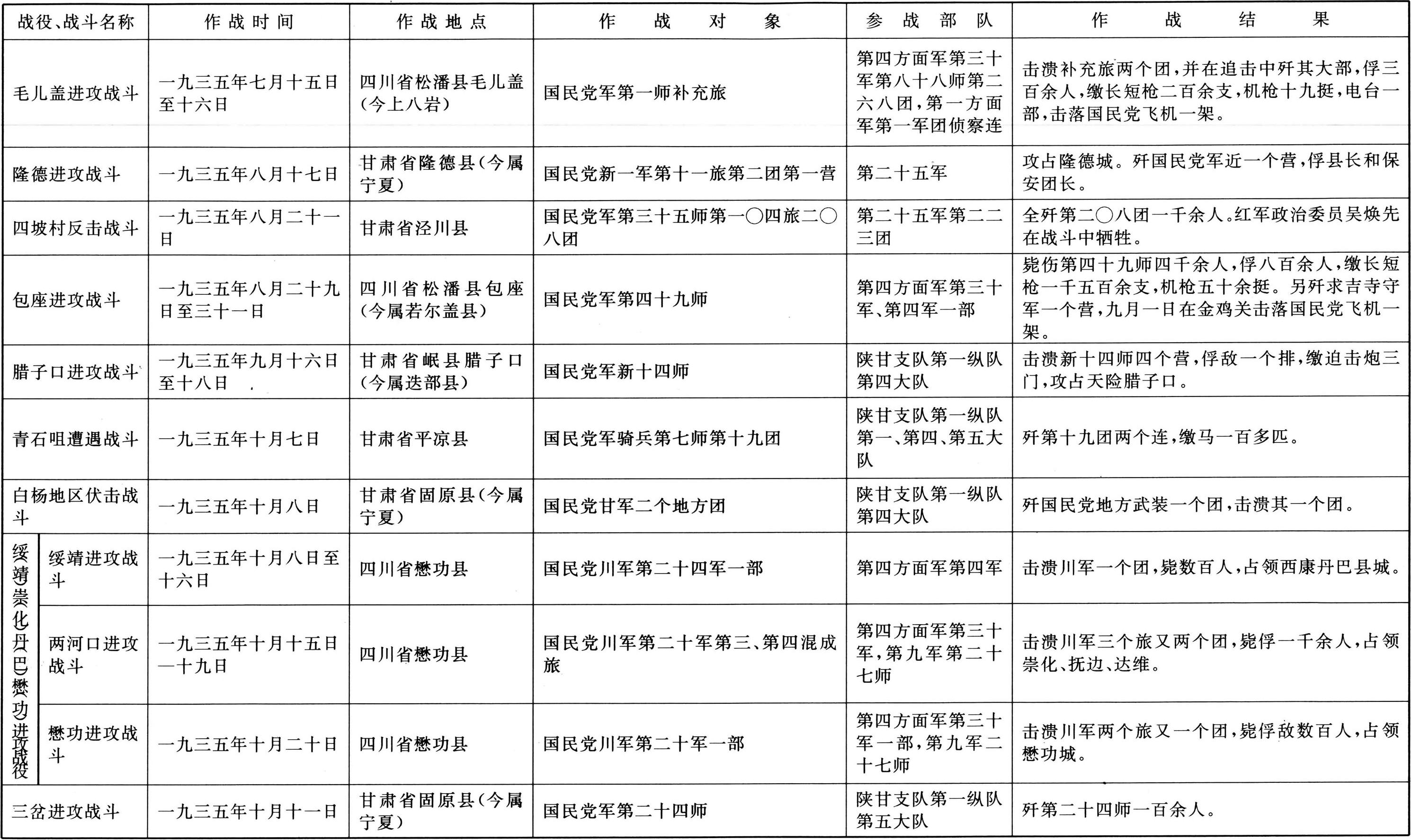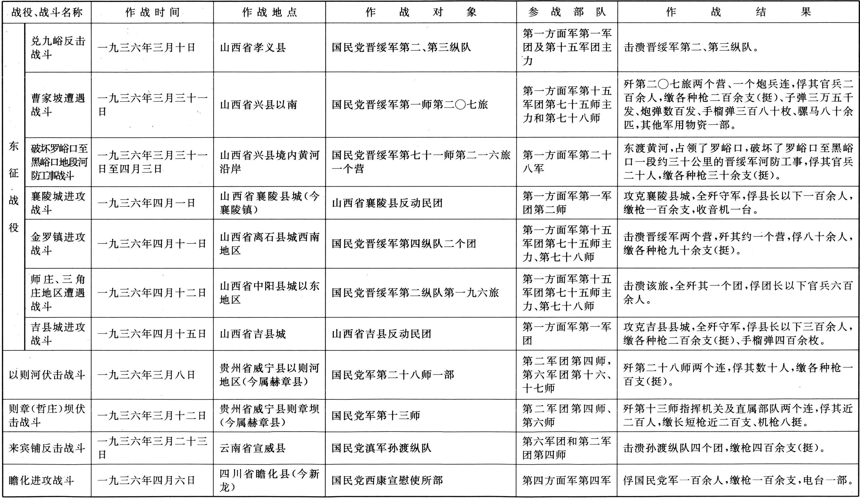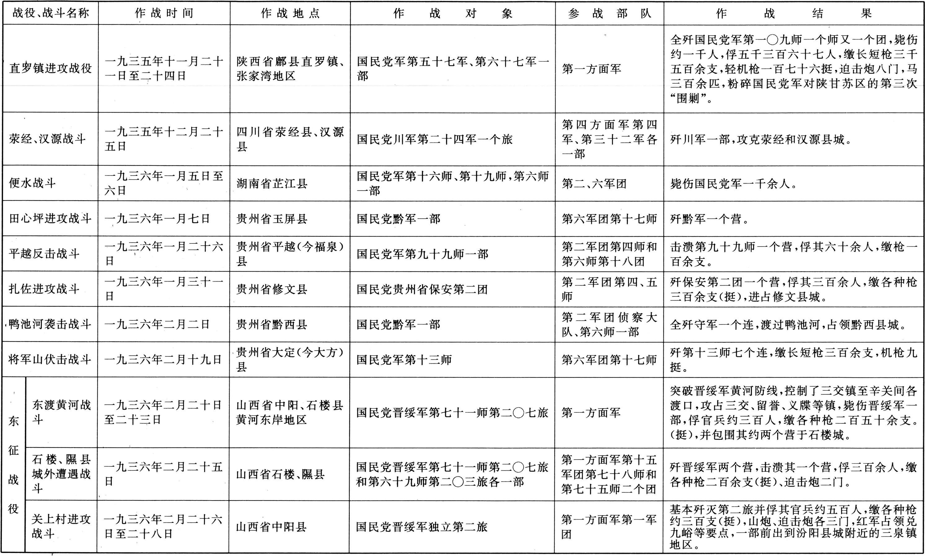 红军长征期间师以上部队主要战役、战斗战绩统计