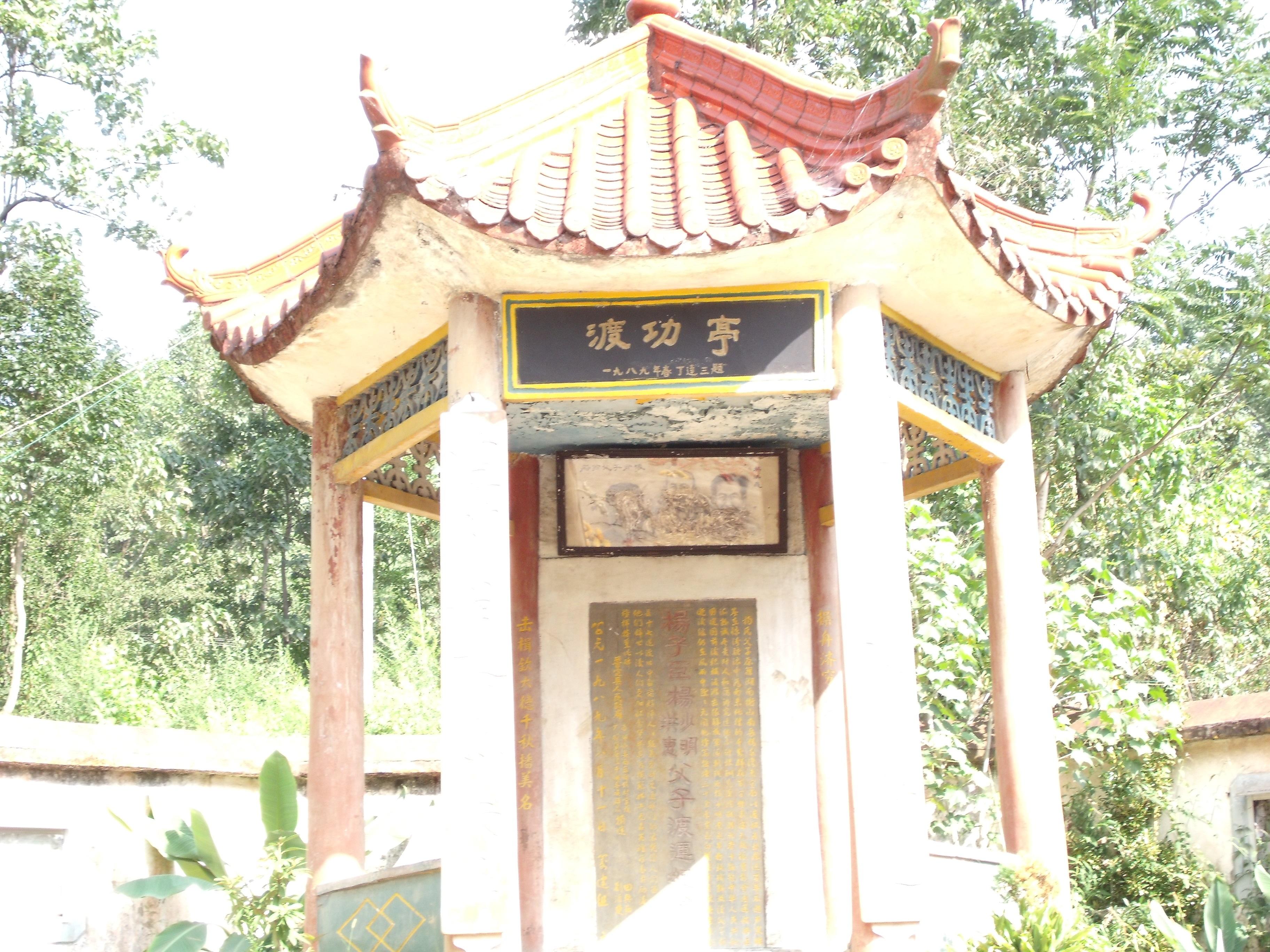 - 普定县渡功亭位于贵州省安顺市普定县马场镇那细村三官庙组寨子东南面。 建于1989年,亭座东南向西北,正六边形,建筑占地面积144平方米,高5.5米,6柱6角,攒尖顶建筑、琉璃瓦屋顶。... 普定县渡功亭位于贵州省安顺市普定县马场镇那细村三官庙组寨子东南面。 建于1989年,亭座东南向西北,正六边形,建筑占地面积144平方米,高5.5米,6柱6角,攒尖顶建筑、琉璃瓦屋顶。国画大师袁晓岑先生题有一匾在亭子南边“江流不息 业绩永垂”,著名美学家刘纲纪先生在亭子北边附有一匾“爱国爱乡 无私奉献”。亭内立碑1通,青石质,楷书竖向阴刻“杨子臣少明洪惠父子渡运纪念碑”,尺寸为10×10厘米,落款田兴翔书、刘淮楚文。目前,亭子受腐蚀影响较为严重,布局设施受到人为破坏,四周环境卫生无人管理。 杨子臣,祖籍湖南衡山南岳杨家湾,后迁至普定县落东渡船为业。长子洪生、次子洪惠继承父业。落东渡口座落三岔河上游,处于织金、普定、六枝交界的边远山区,渡口处于水急浪涌之地,摆渡已有数百年历史。杨子臣渡船60余载,为人忠厚,两个儿子继承父亲禀性,性情随和,待人坦诚。他们父子经多年观察,对河道情况、水势变化了如指掌,练就了精湛的摆渡技巧。他们渡船,从不强求船费。两岸村寨不分老幼贫富,从未收过船钱,早到早渡,晚到晚渡,夜半有急事求渡,也从不推诿。1949年12月,杨氏父子冒着生命危险多次帮助人民解放军和地方武装渡河清剿土匪。1989年,为纪念杨家父子,在落东渡口建立渡功亭和纪念碑。杨氏父子摆渡的事迹载入《凡人之碑》一书。 2002年定为“安顺市爱国主义教育基地”,2006年5月10日普定县人民政府公布为第五批县级文物保护单位。 展开